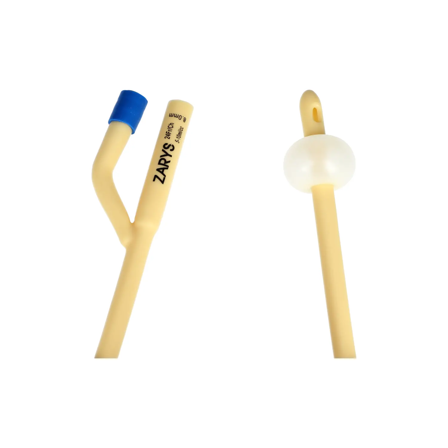 Močový katéter je vyrobený z mäkkého a flexibilného latexu, odolného voči zalomeniu a skrúteniu. Má atraumatickú, mierne zaoblenú špičku, s dvoma bočnými otvormi, mäkkými zaoblenými okrajmi a povrch je potiahnutý silikónom, ktorý umožňuje jeho atraumatické vloženie. Univerzálny koniec katétra sa zmestí do štandardných konektorov v moči.