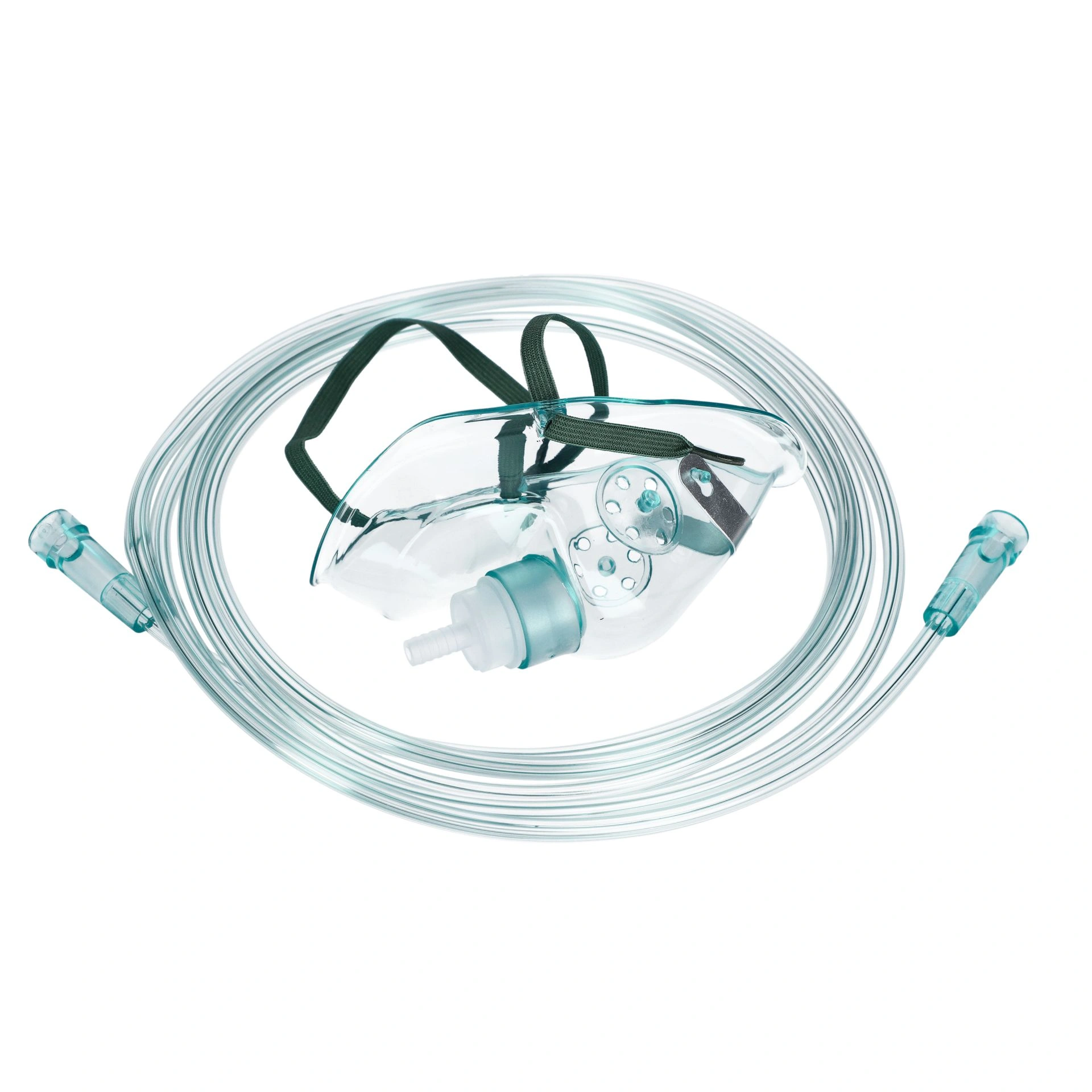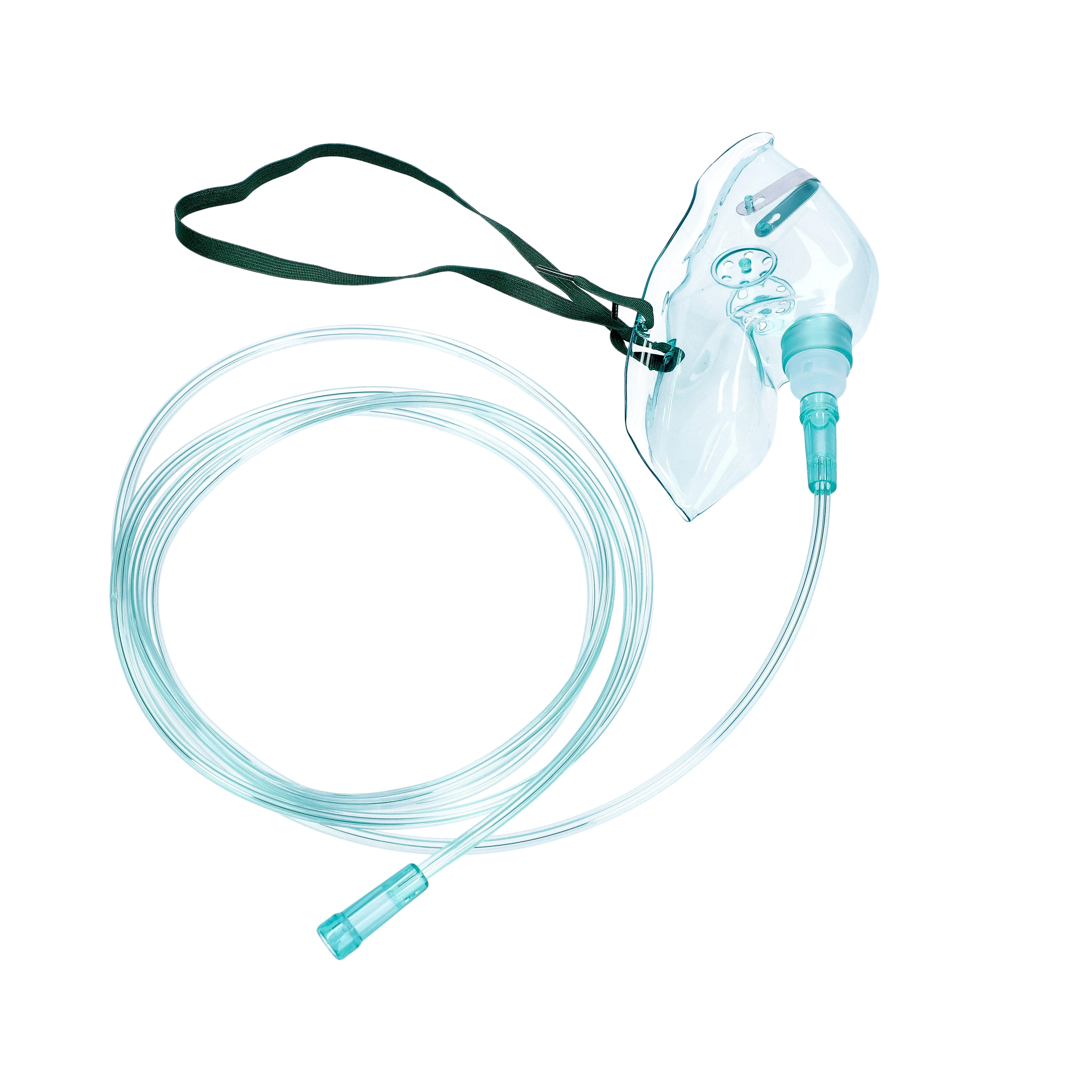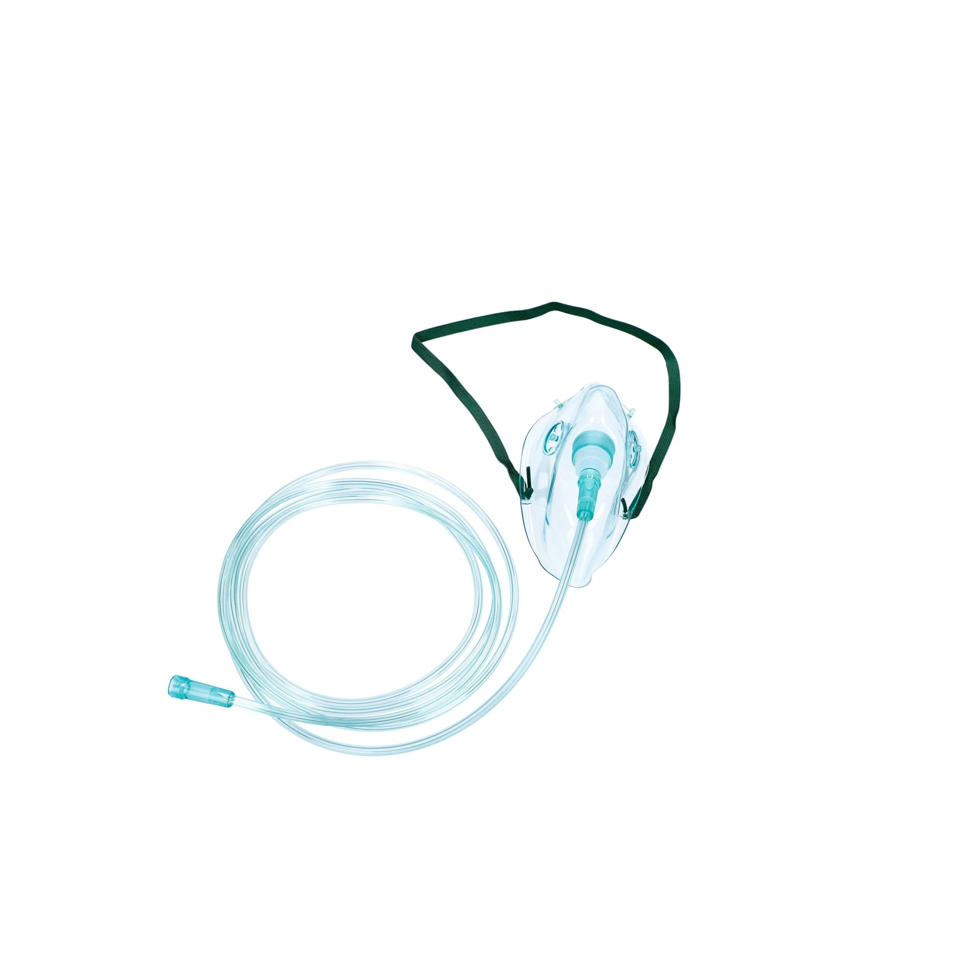 Maska na kyslík vyrobená z priehľadného a netoxického PVC, bez latexu. Má nastaviteľnú kovovú dosku na nos a gumové upínanie. Vybavená hadičkou so starým prierezom, odolnou voči ohýbaniu, s univerzálnymi konektormi. Otočný konektor umožňuje prispôsobenie k pozícii pacienta. Jednorazové zariadenie, sterilizované etylénoxidom, určené na vykonávanie kyslíkovej terapie a podávanie kyslíka v striktne definovanej koncentrácii, nezávisle od dýchacieho vzoru pacienta.