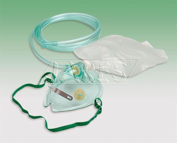 Maska pre kyslíkovú liečbu s vakom pre dospelých s 210 cm dlhou bezpečnostnou hadičkou a plastikovým vreckom.