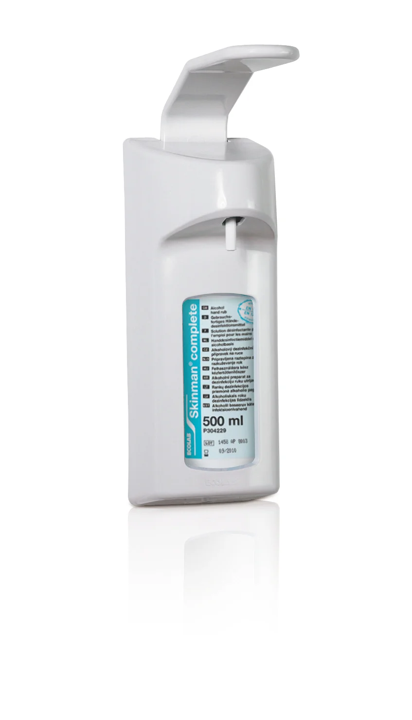 Pákový nástenný dávkovač pre 500ml balenie pre aplikáciu tekutej i gélovej dezinfekcie, mydla a krémov.