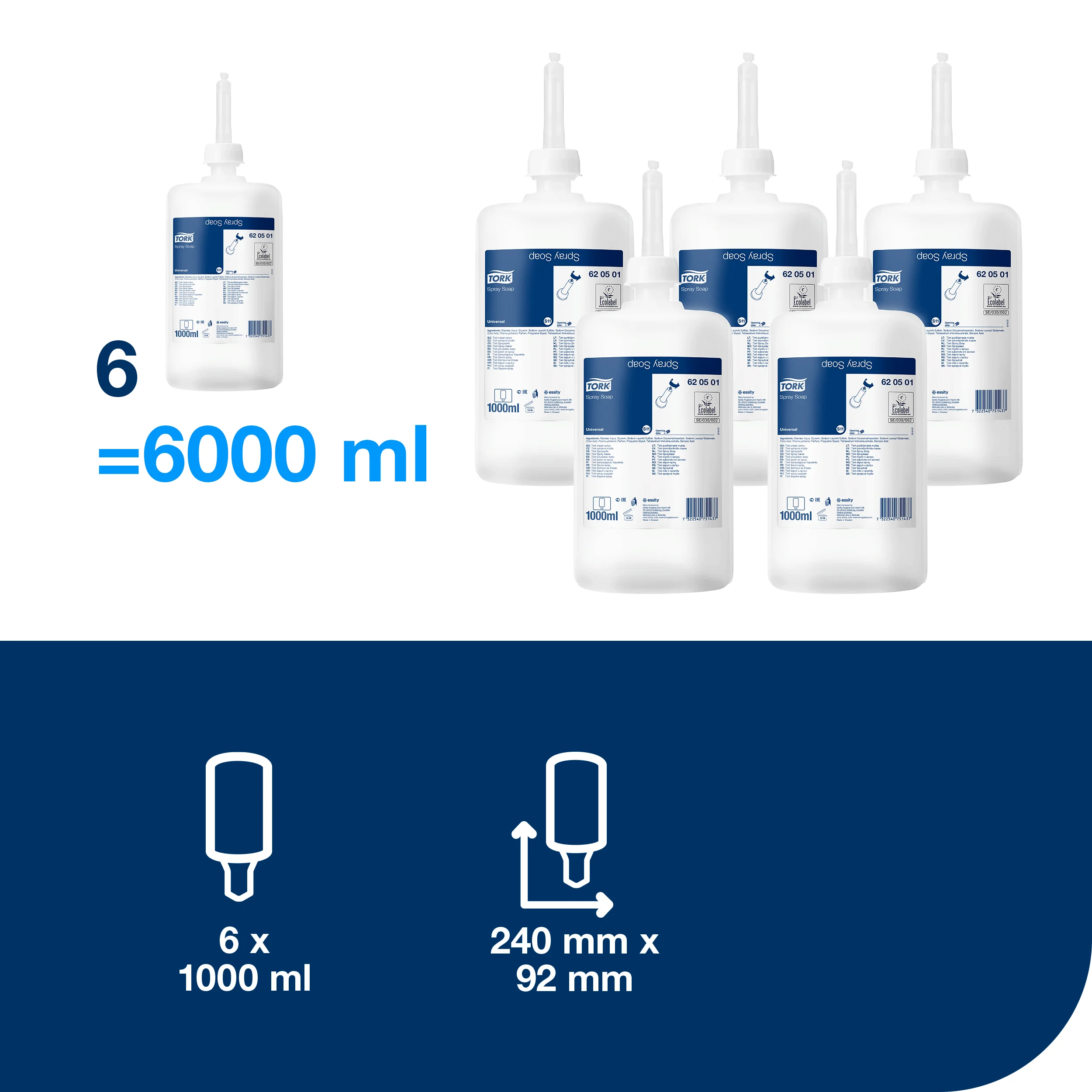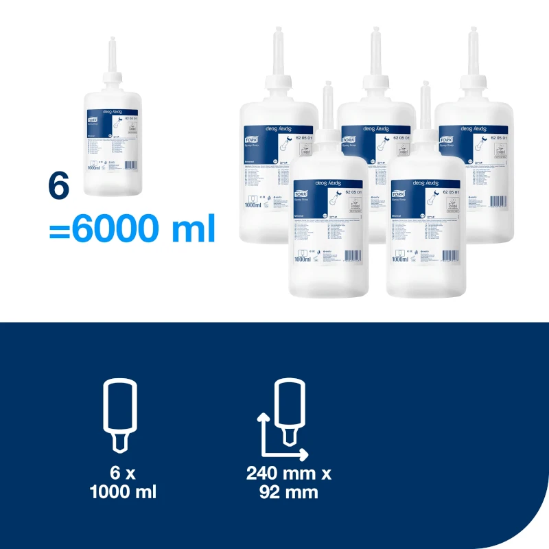 Tork Mydlo S11 v spreji je jemne parfumované mydlo, ktoré je šetrné k pokožke. Toto mydlo je ideálne pre umyvárne s vysokou návštevnosťou, kde je kľúčová efektivita. Upratovací personál ušetrí čas vďaka bezproblémovému naplneniu za menej ako 10 sekúnd. Táto náplň je vhodná pre dávkovače tekutého mydla a mydla v spreji Tork, ktoré sú certifikované ako ľahko použiteľné a poskytujú dobrú hygienu rúk všetkým používateľom.