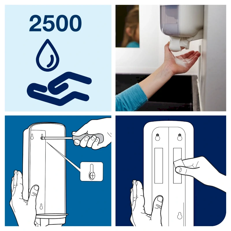 Zlepšite hygienu rúk a znížte množstvo odpadu s naším štartovacím balíčkom Tork, ktorý obsahuje 1 biely dávkovač S4 a jednu náplň s čírym penovým mydlom. Mydlo znižuje spotrebu vody o 35 % a fľaša sa pri používaní obsahu skladá. Navyše, aby sa zlepšila udržateľnosť, zložky sú vybrané pre ich nízky vplyv na vodné organizmy, pričom 99 % z nich je prírodného pôvodu. Dávkovač bol vytvorený na jednoduché používanie - má certifikát na údržbu bez námahy a jeho naplnenie trvá menej ako 10 sekúnd.