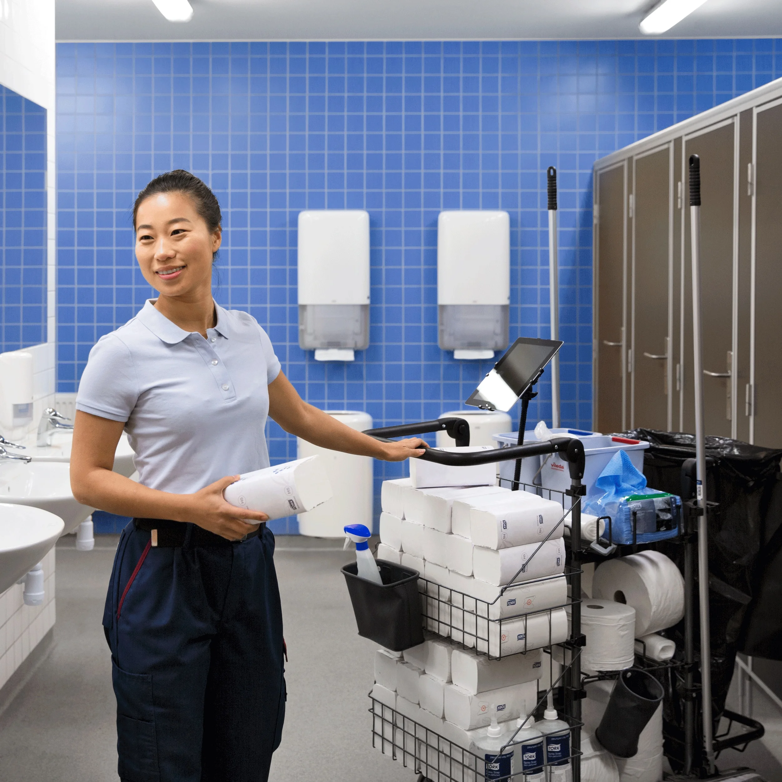 Umyvárne s vysokou návštevnosťou môžu mať problémy s nedostatkom papierových utierok, dlhými radmi a tiež aj s plytvaním utierkami. Papierové utierky na ruky Tork PeakServe® Continuous™ vám pomôžu vyhnúť sa týmto problémom. Vďaka o 250 % väčšiemu počtu utierok na jeden zásobník na papierové utierky sa vaši zamestnanci môžu sústrediť na upratovanie, nie na dopĺňanie. Patentovaný systém Continuous™ tiež zabezpečuje, že utierky sa dávkujú po jednej za menej ako tri sekundy, a to aj medzi zväzkami, čím sa predchádza plytvaniu a zabraňuje zaseknutiu.