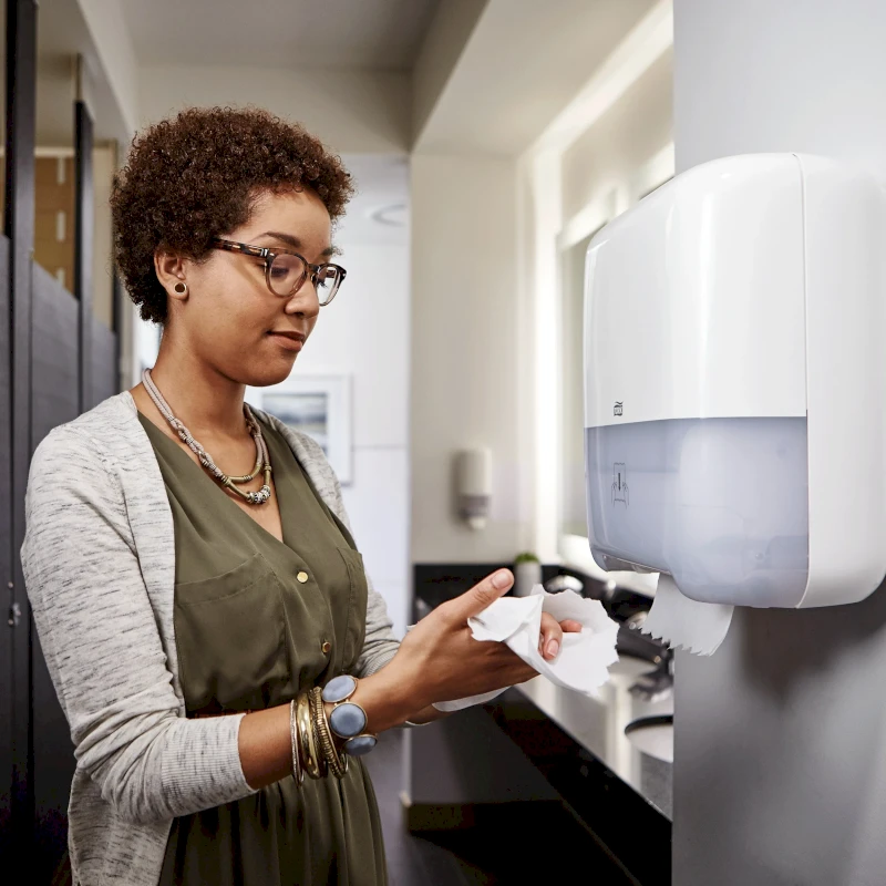 Urobte svojim hosťom pohodlie s mäkkými papierovými utierkami na ruky Advanced Tork Matic®. Dobre osušia ruky a majú pekný elegantný vzhľad s dekorom sivých listov. Tieto utierky s vyššou kvalitou sú odolné voči roztrhnutiu a sú vysoko absorpčné na efektívne sušenie rúk. Navyše pri použití s naším zásobníkom na utierky na ruky Tork Matic®, ktorý ponúka dávkovanie na jeden útržok, zlepšujú hygienu a znižujú množstvo odpadu. Zásobníky tiež šetria čas vášho personálu, pretože sa ľahko dopĺňajú a sú nenáročné na údržbu.