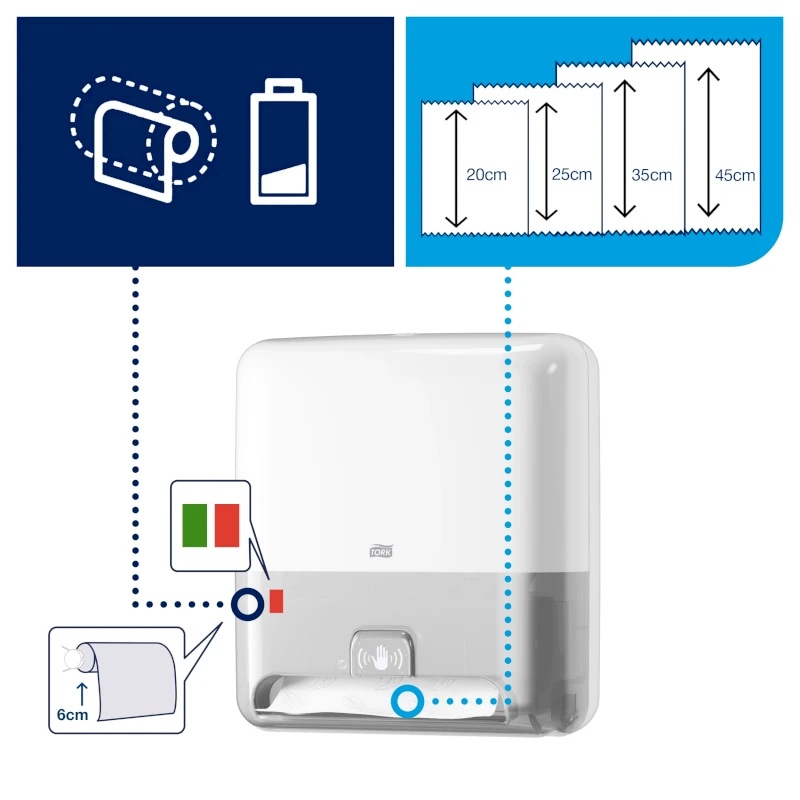 Zvýšte účinnosť sušenia rúk pomocou tohto zásobníka. Hygienické a úsporné jednorazové dávkovanie prostredníctvom senzora Intuition znižuje množstvo odpadu a obslúži viac hostí. Zvýši sa aj čistota, pretože hostia sa nebudú dotýkať dávkovača. Naše elegantné veľkokapacitné zásobníky na papierové utierky na ruky sú nenáročné na údržbu, čo je ideálne pre umyvárne s vysokou návštevnosťou. Navyše poskytujú skvelý používateľský zážitok vďaka ocenenému dizajnu, ktorý získal ocenenie iF Product Design Award a Red Dot Award 2009.