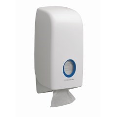 Zásobník na skladaný toaletný papier s rýchlym dopĺňaním v elegantnom a modernom dizajne. Dodávaný v bielej farbe s vysokým leskom. Ľahko umývateľný. Je dodávaný s okienkom pre ľahkú kontrolu papiera v zásobníku. Rozmery: 34,3 x 16,9 x 12,3 cm (d x š x v) Vhodný pre skladaný toaletný papier Kimberly 8508 a 8109.