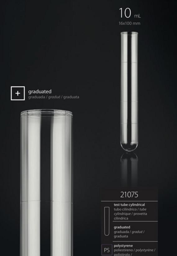 Promed skúmavka PS 16x100 mm pre 10 ml so stupnicou, guľaté dno, rovný okraj, nesteril FL/100