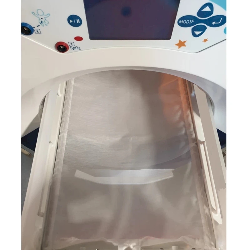 Špeciálne navrhnutá na pohodlné a bezpečné uloženie novorodenca počas fototerapie. Vyrobená z nehorľavej bielej polyesterovej sieťoviny Trevira CS M1, ktorá sa ľahko udržiava a nezráža sa pri praní. Vhodná na pranie pri vysokých teplotách.