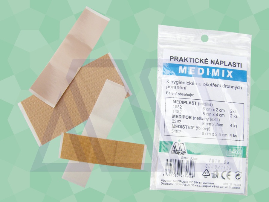 Mix strihaných náplastí z fólie, netkaného textilu a textilných náplastí.