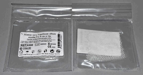 Sterilný tyl s Vaselinum album. Používa sa na ošetrenie povrchových popálenín, nehojacich sa kožných defektov, preležaním a v plastickej chirurgii. Použitie je vhodné najmä u pacientov s kožnou precitlivelosťou a precitlivelosťou na lieky. Obal je z PE fólie.