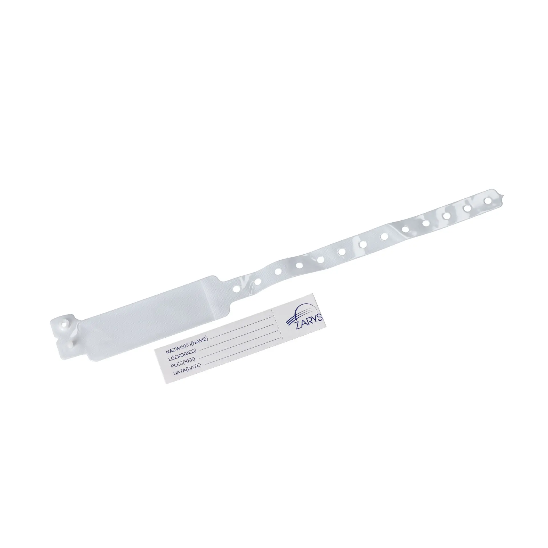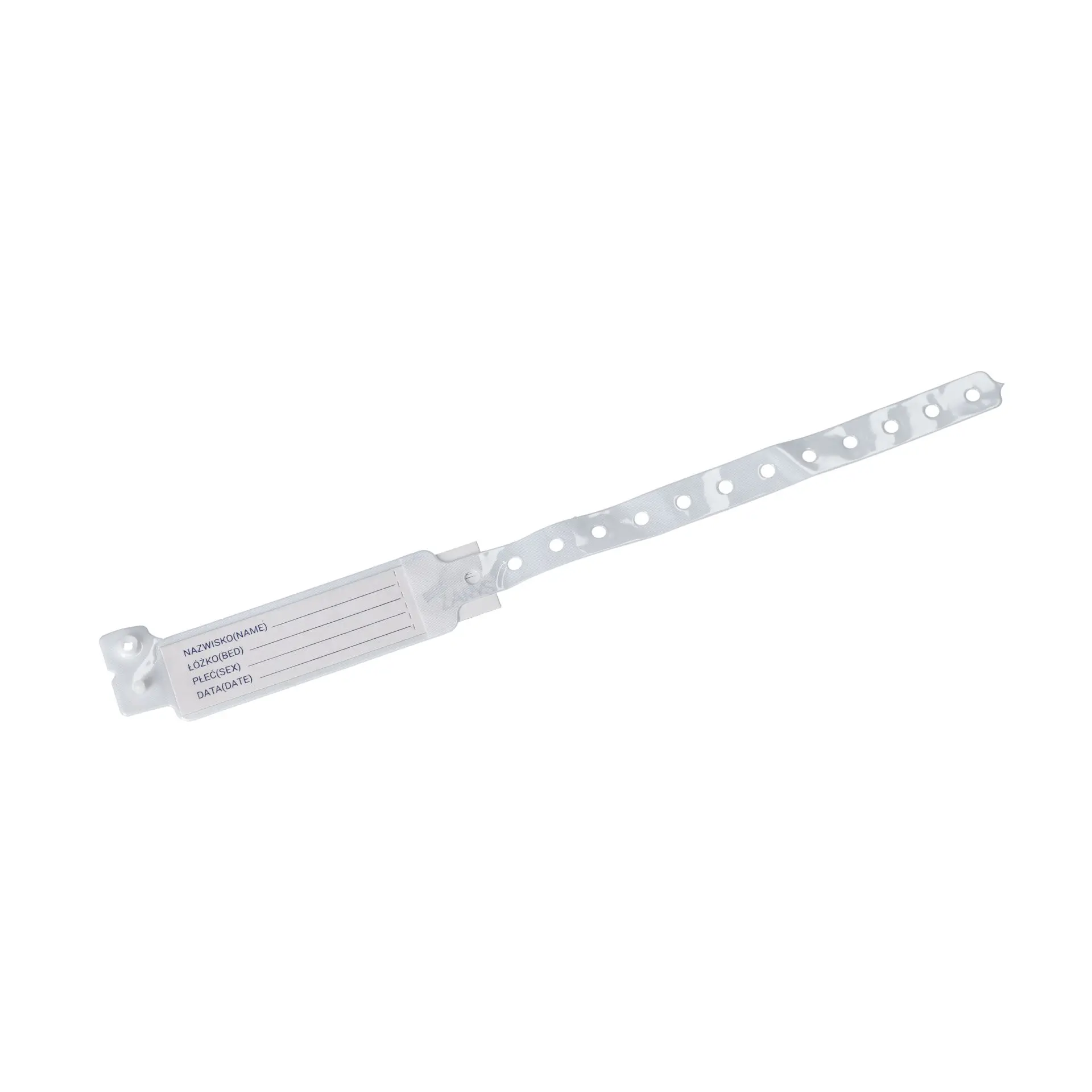 ID náramok vyrobený z mäkkého vinylu, odolný voči vlhkosti a nemocničným tekutinám. Je flexibilný, ľahký a ľahko sa nasadzuje, so zapínaním a popisovým poľom. Jednorazové zariadenie, hypoalergénne, bez latexu a ftalátov. Zaoblené hrany, vysoká pevnosť v ťahu. Zariadenie používané na identifikáciu pacienta.