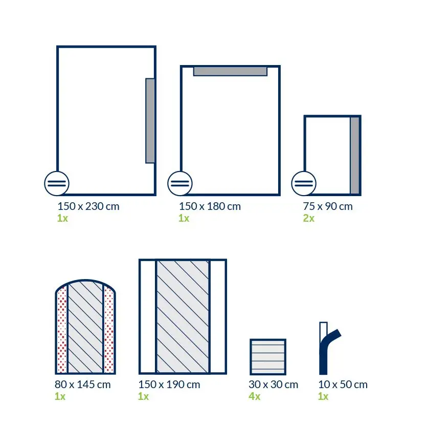 - 1ks rúško s adhezívnym okrajom 150cm x 180cm