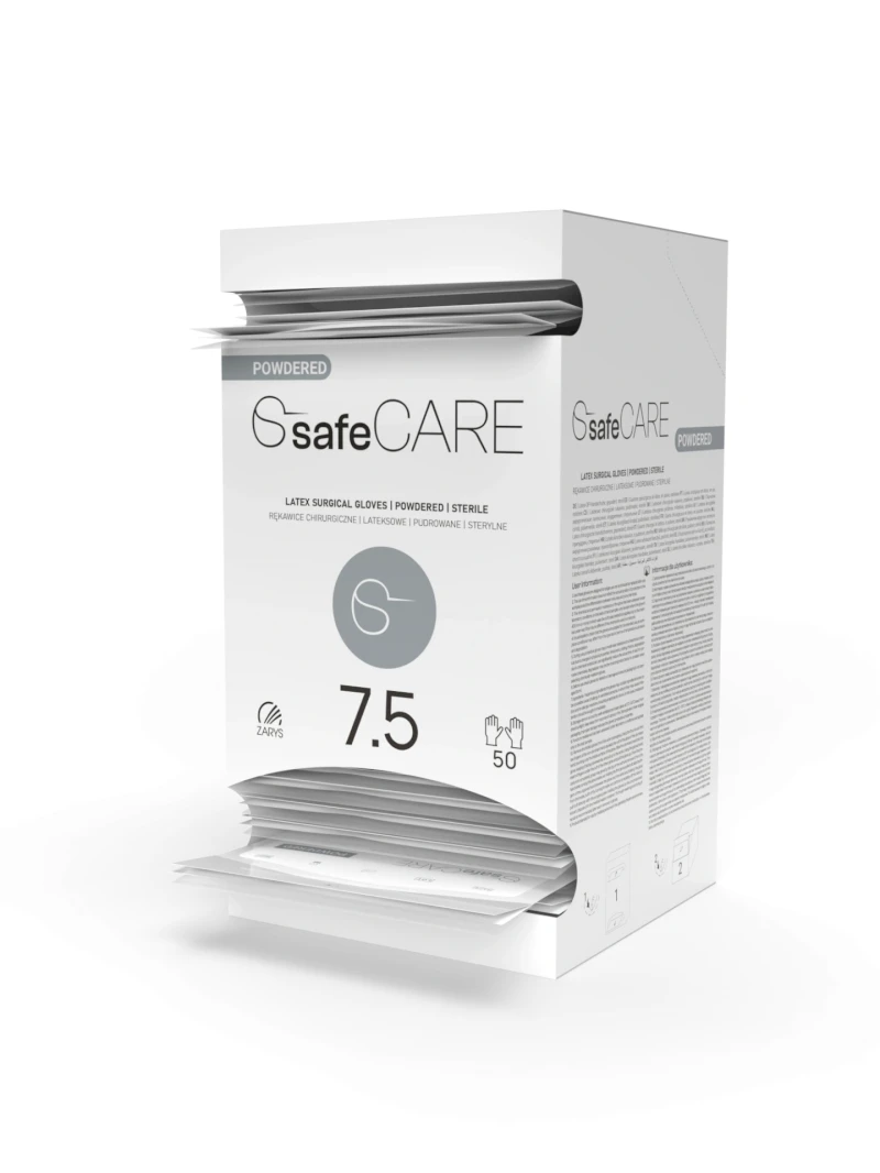safeCARE ponúka vysoko kvalitné pudrované chirurgické rukavice, ktoré spájajú univerzálne použitie, optimálnu bezpečnosť a nákladovo efektívnu logistiku. Ľahký povlak z kukuričného škrobu zabezpečuje jednoduché nasadzovanie a vyzliekanie, pričom zároveň minimalizuje riziko podráždenia pokožky.