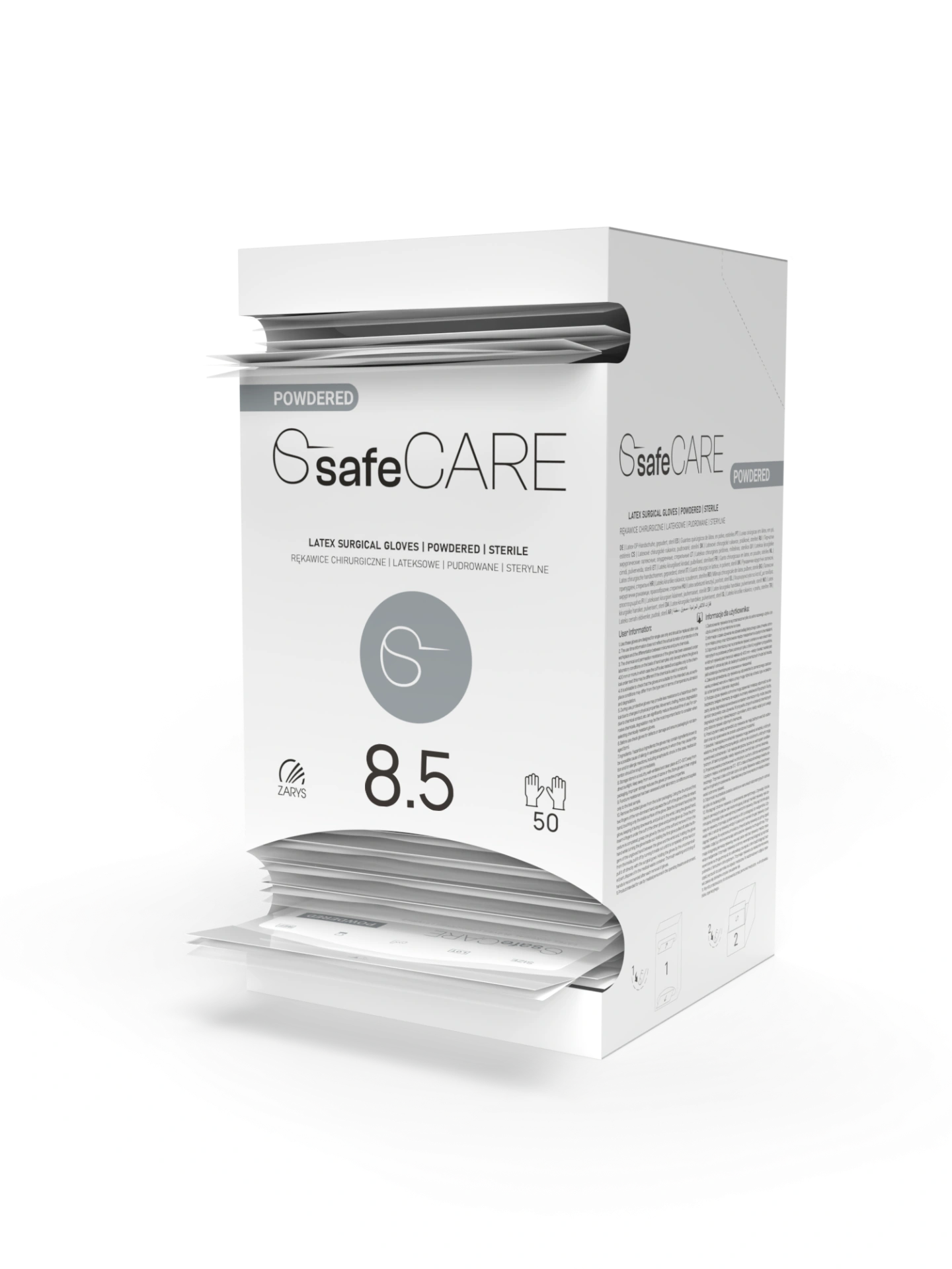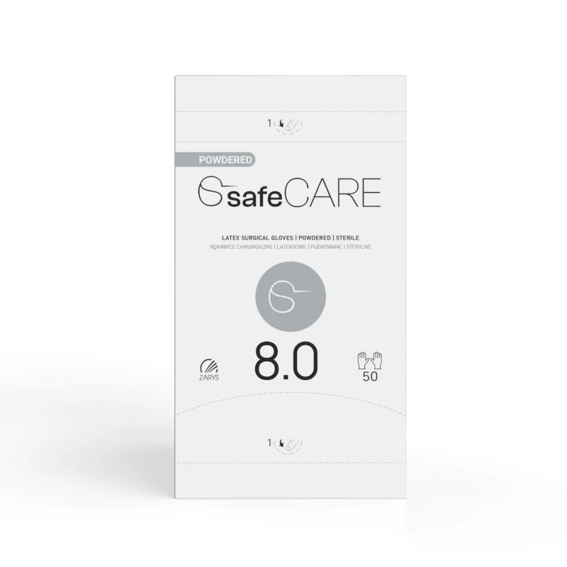 safeCARE ponúka vysoko kvalitné pudrované chirurgické rukavice, ktoré spájajú univerzálne použitie, optimálnu bezpečnosť a nákladovo efektívnu logistiku. Ľahký povlak z kukuričného škrobu zabezpečuje jednoduché nasadzovanie a vyzliekanie, pričom zároveň minimalizuje riziko podráždenia pokožky.