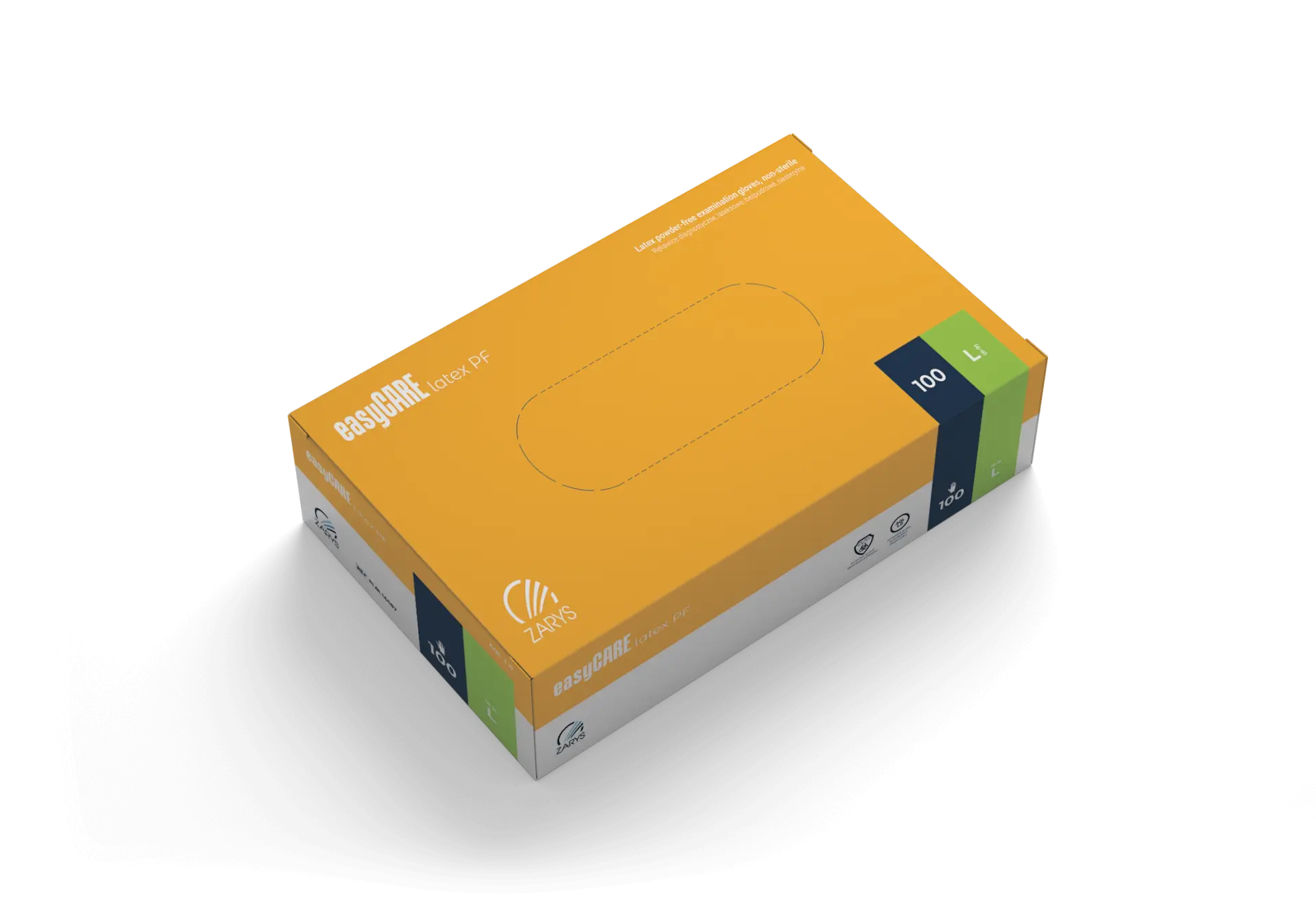 easyCARE jednorazové vyšetrovacie rukavice s rolovaným okrajom, vyrobené z prírodného latexu. Výrobok má polymérový vnútorný povrch a vonkajší povrch s textúrou po celej ploche dlane a prstov. Nesterilný, nepúdrovaný produkt, ktorý vyhovuje technickým normám, povolený na kontakt s potravinami. Určený na diagnostiku pacientov, poskytuje bariéru proti prenosu mikroorganizmov, čím minimalizuje riziko krížovej kontaminácie.