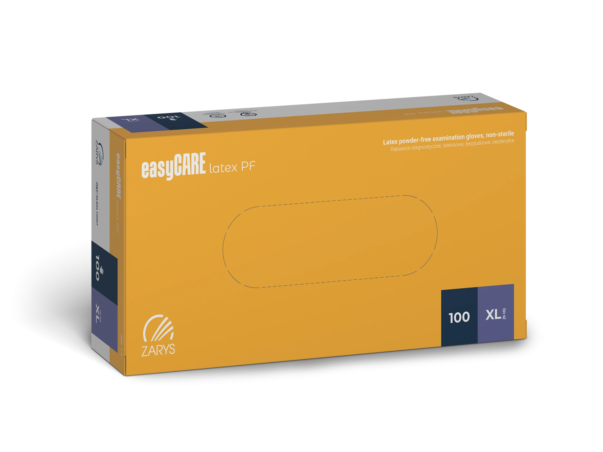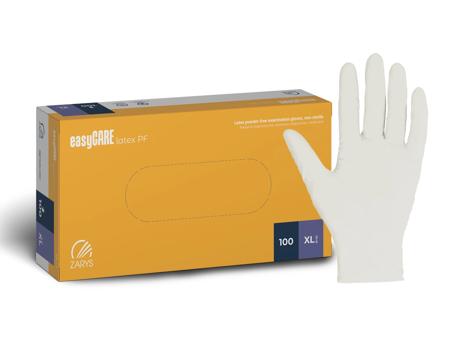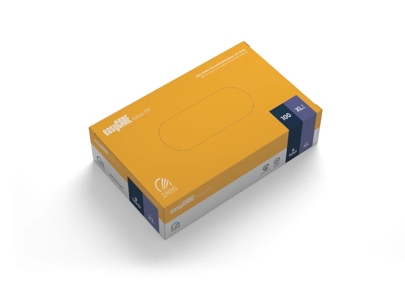 Jednorazové vyšetrovacie rukavice easyCARE s manžetou so spevneným okrajom, vyrobené z prírodného latexu. Rukavice majú polymérizovaný vnútorný povrch a textúrovaný vonkajší povrch na celej dlani a prstoch. Nesterilný, bezprašný výrobok v súlade s technickými normami, povolený na kontakt s potravinami. Určené na diagnostiku pacientov, poskytujú bariéru proti prenosu mikroorganizmov medzi operátorom a pacientom, čím minimalizujú riziko krížovej kontaminácie.