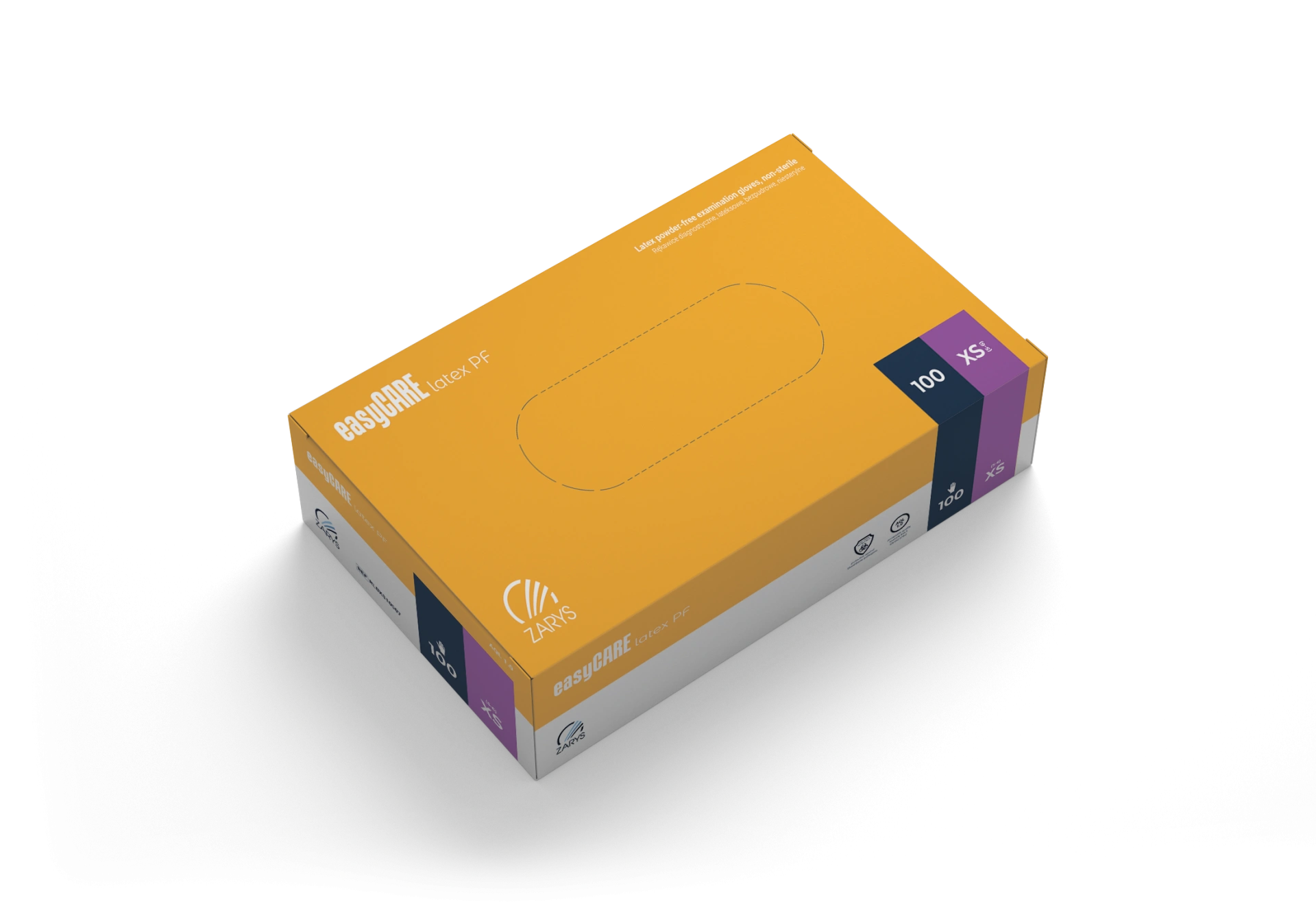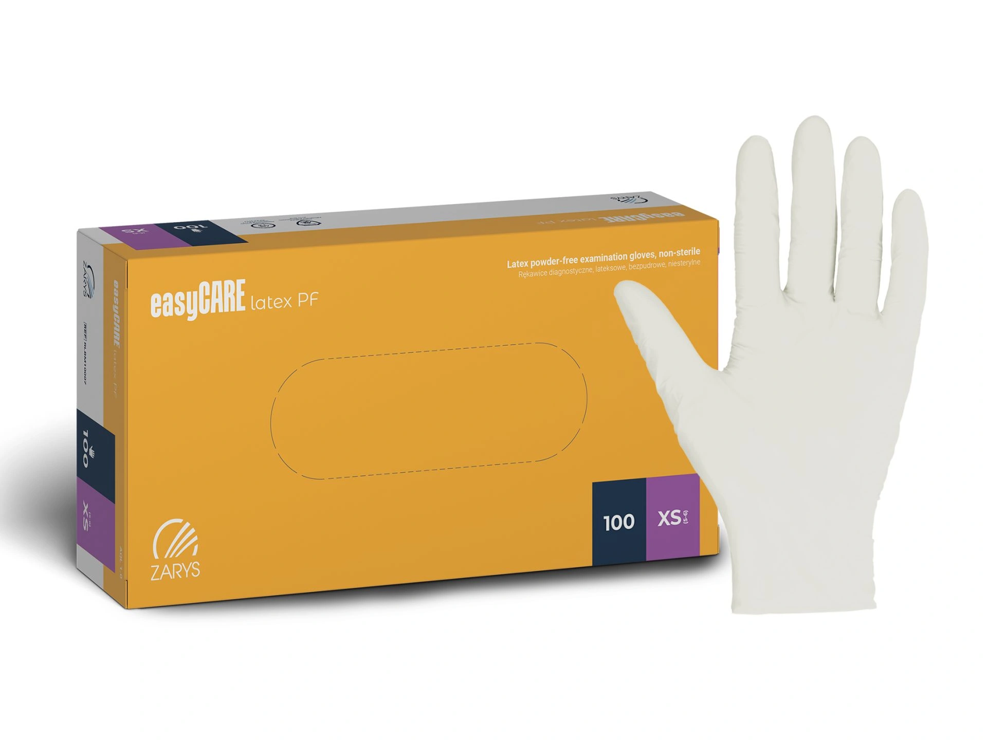 easyCARE jednorazové vyšetrovacie rukavice s manžetou, vyrobené z prírodného kaučuku latexu, sú určené na diagnostiku pacientov. Rukavice majú polymerizovaný vnútorný povrch a textúrovaný vonkajší povrch pokrývajúci celú dlaň a prsty. Tieto nesterilné, bezprašné rukavice spĺňajú rôzne technické normy a sú vhodné na kontakt s potravinami. Poskytujú ochrannú bariéru proti prenosu mikroorganizmov medzi operátorom a pacientom, čím minimalizujú riziko krížovej kontaminácie.