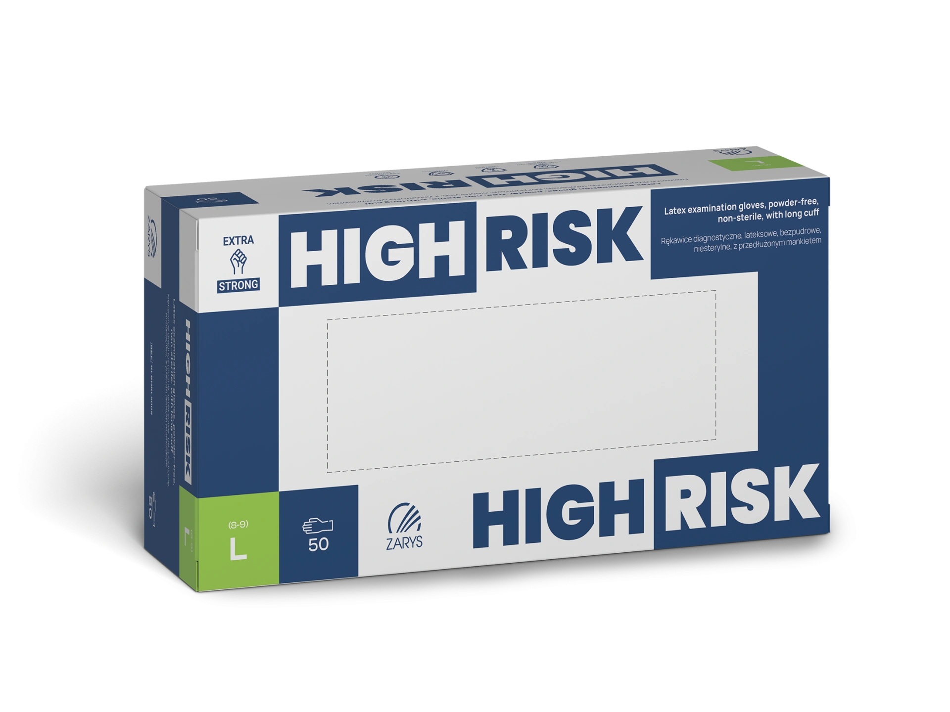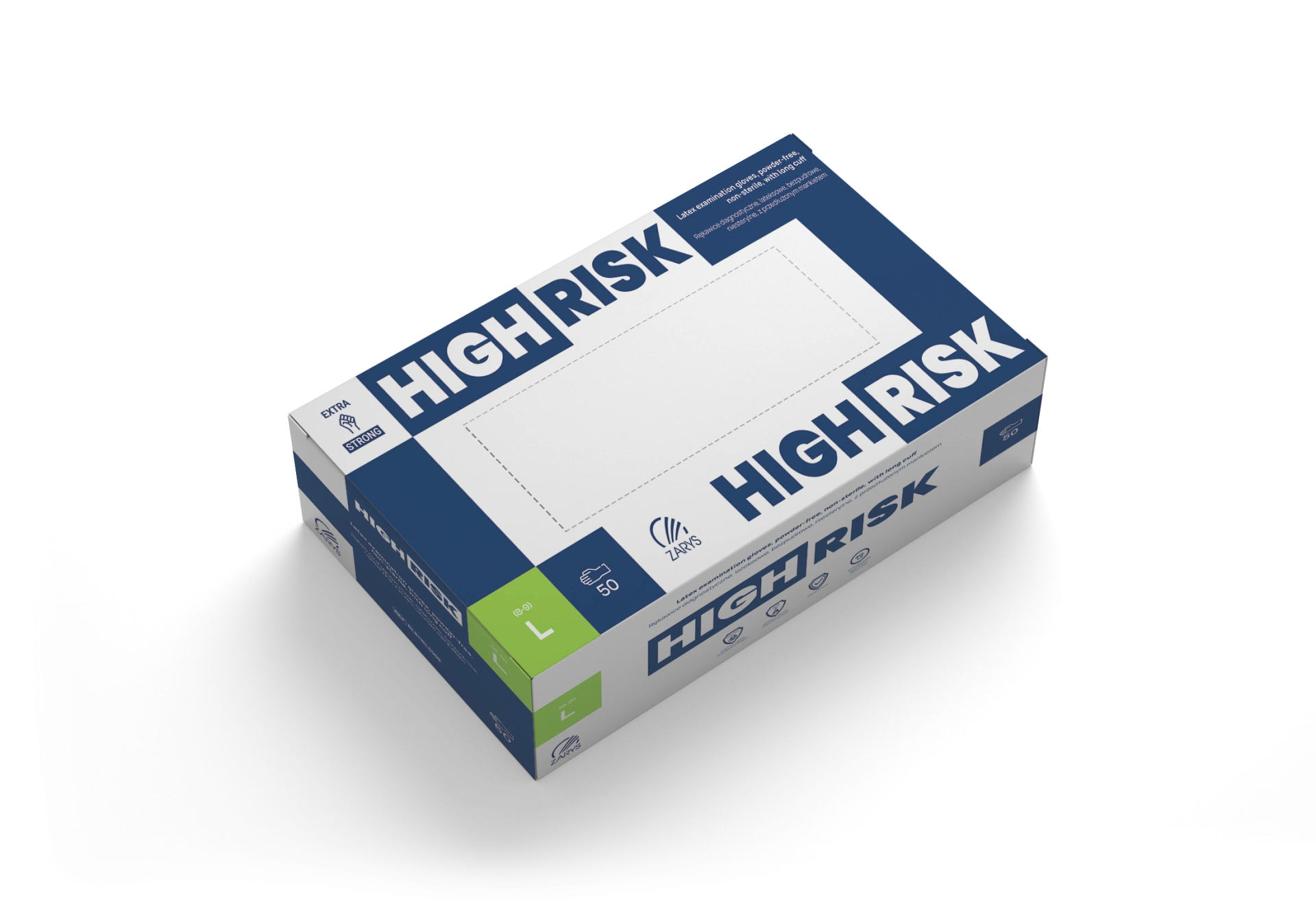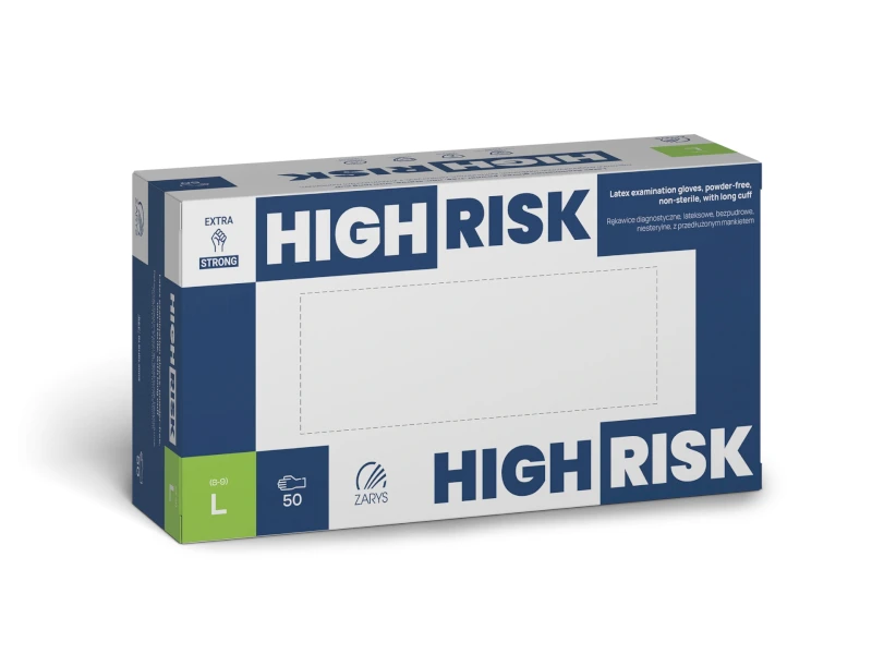 Jednorazové vyšetrovacie rukavice vyrobené z prírodného latexu s ohrnutou a predĺženou manžetou. Výrobok s chlorovaným povrchom a dodatočnou textúrou na končekoch prstov. Nesterilné a bezprašné rukavice, vyhovujúce technickým normám, určené na diagnostiku pacientov, poskytujúce bariéru proti prenosu mikroorganizmov medzi zdravotníkom a pacientom, čím minimalizujú riziko krížovej kontaminácie; odporúčané pri zákrokoch so zvýšeným rizikom infekcie.