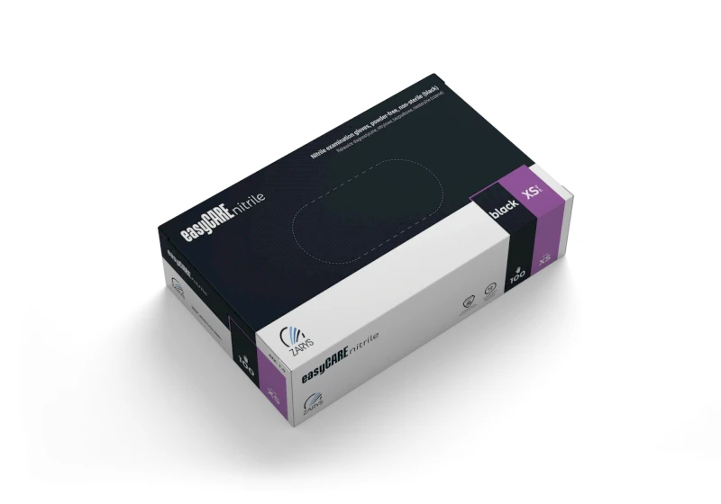 Jednorazové nitrilové vyšetrovacie rukavice s manžetou so zúbkovaným okrajom. Produkt má chlórovaný vnútorný povrch. Nesterilné a bezprašné rukavice, spĺňajúce technické normy, schválené pre kontakt s potravinami.