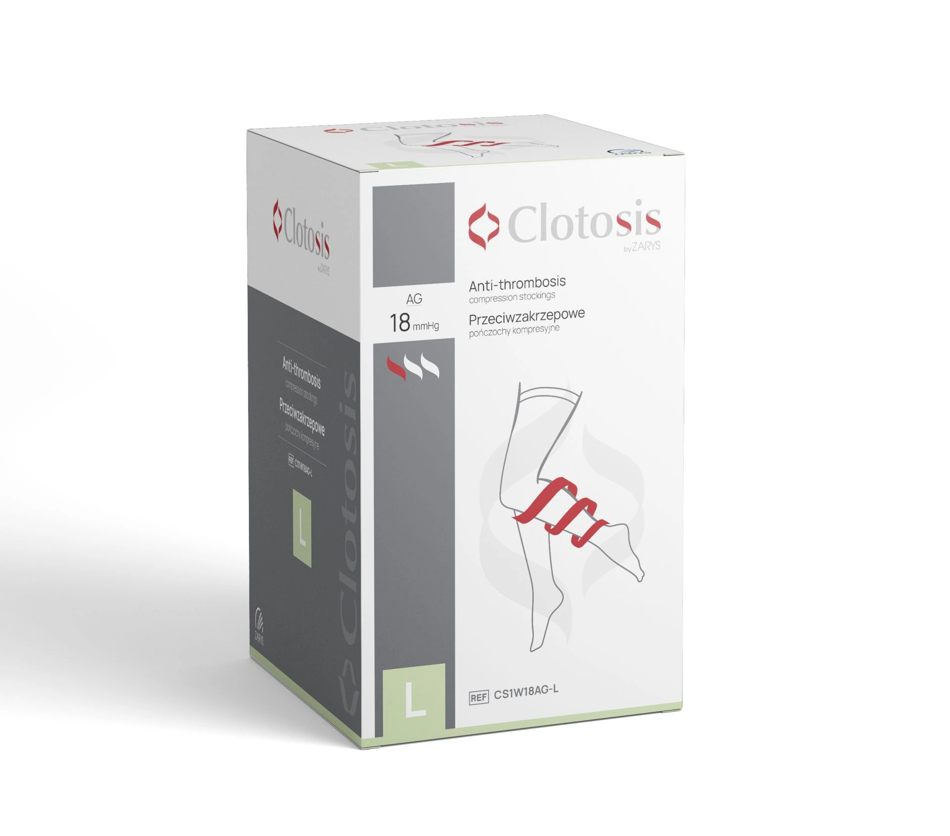 Kompresné pančuchy Clotosis proti trombóze sú vysoko kvalitné zdravotnícke pomôcky určené na prevenciu hlbokej žilovej trombózy a pľúcnej embólie u hospitalizovaných pacientov, najmä u tých, ktorí sú po operácii imobilní. Vyrobené z odolnej zmesi polyamidu a elastanu, poskytujú kompresiu18 mmHg s odstupňovaným tlakovým systémom, ktorý podporuje krvný obeh v dolných končatinách a znižuje riziko vzniku krvných zrazenín. Biele pančuchy s farebne označenou pätou uľahčujú identifikáciu veľkosti, zatiaľ čo silikónový lem zabezpečuje pevné a pohodlné uchytenie. Sú certifikované podľa OEKO-TEX 100 pre bezpečnosť a vyrábané v súlade s normami EN ISO 9001 a EN ISO 13485.