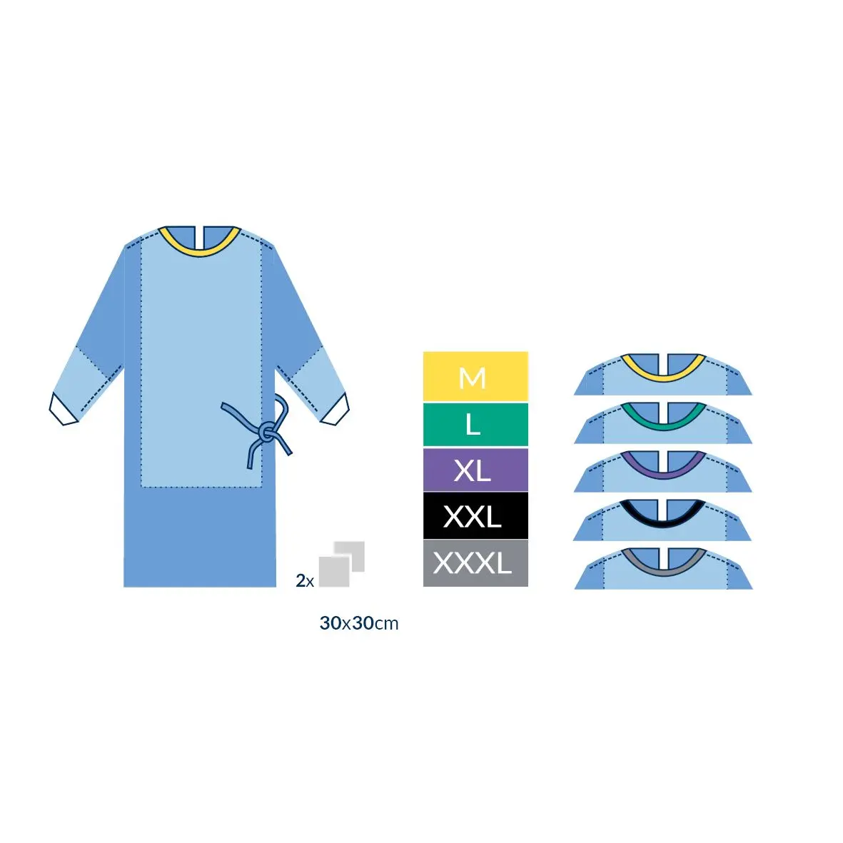 Plne bariérový, sterilný a jednorazový chirurgický plášť ALPHAtex vyrobený z priedušného a paropriepustného netkaného polypropylénového materiálu typu SMS. Produkt s nepriepustnými časťami umiestnenými na prednej strane a rukávoch, odolný proti prieniku mikroorganizmov a tekutín. Materiál má vysokú pevnosť v ťahu a proti roztrhnutiu. Plášť s farebným lemovaním na krku pre jednoduché rozlíšenie veľkostí, spĺňa požiadavky normy EN 13795-1, je bez latexu, nehorľavý a bezprašný, určený na použitie na operačnej sále ako nepriepustná bariéra proti tekutinám a mikroorganizmom. Balený v ochrannom rúšku s dvomi absorpčnými uteráčikmi. Plášť chráni pred prenosom infekčných agensov od chirurgického tímu k chirurgickej rane.