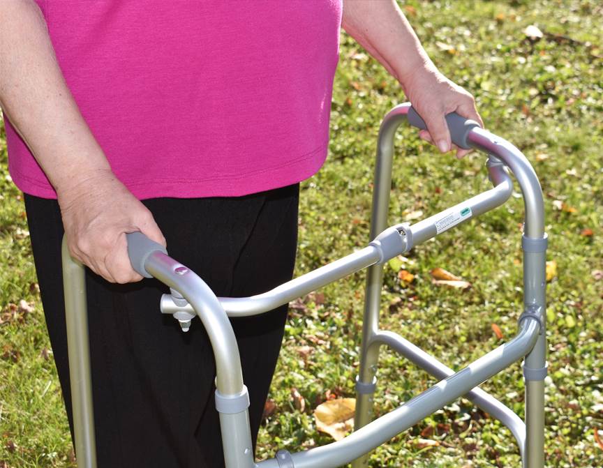 Výškovo nastaviteľné chodítko pomáha získať istotu pre osoby so zníženou mobilitou. Ľahká konštrukcia z hliníka s protišmykovými gumenými nadstavcami nôh.