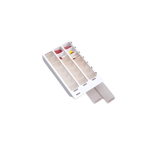 Dávkovač liekov týždenný slúži k prehľadnému usporiadaniu a spoľahlivému dávkovaniu liekov doma alebo na cestách. Umožňuje prípravu liekov na celý týždeň. Kolónky dávkovača sú dostatočne veľké a sú vhodné aj pre pacienta s väčším množstvom predpísaných liekov.