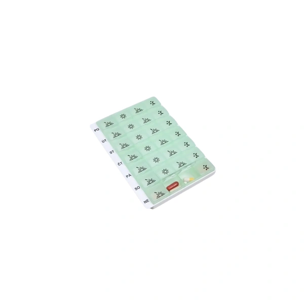 Dávkovač liekov týždenný slúži k prehľadnému usporiadaniu a spoľahlivému dávkovaniu liekov doma alebo na cestách. Umožňuje prípravu liekov na celý týždeň. Kolónky dávkovača sú dostatočne veľké a sú vhodné aj pre pacienta s väčším množstvom predpísaných liekov.