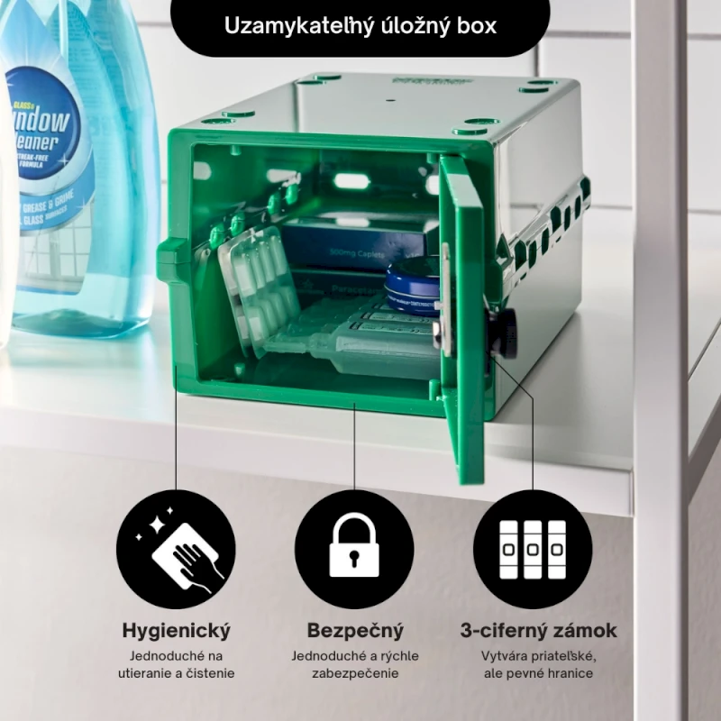 - Univerzálne využitie – Ochrana liekov pred deťmi, skladovanie potravín, kontrola elektroniky.