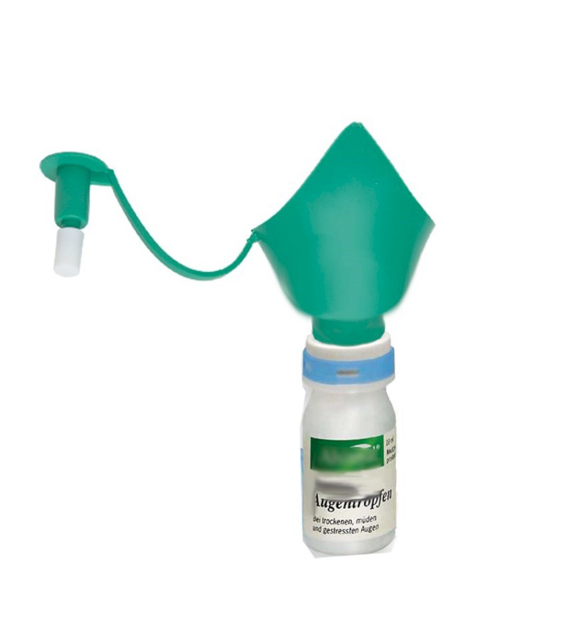 Pomôcka na uľahčenie kvapkania očných kvapiek alebo na oplach očí. Má veľký flexibilný otvoro pre vkladanie rôznych kvapkacích fľašiek. Pomôcka je umiestnená priamo nad okom bez toho, aby kvapkacia fľaša neprišla do kontaktu s okom.