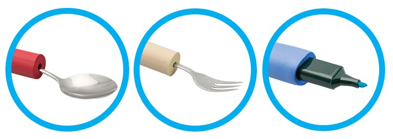 Úchyt pre domáce potreby z mäkkej peny slúži na pohodlnejšie uchopenie predmetov. V balení sa nachádzajú 3 rôzne veľkosti úchytov, ktoré sú odlíšené farebne. Dajú sa využiť na písacie potreby, príbor a rôzne náradie.