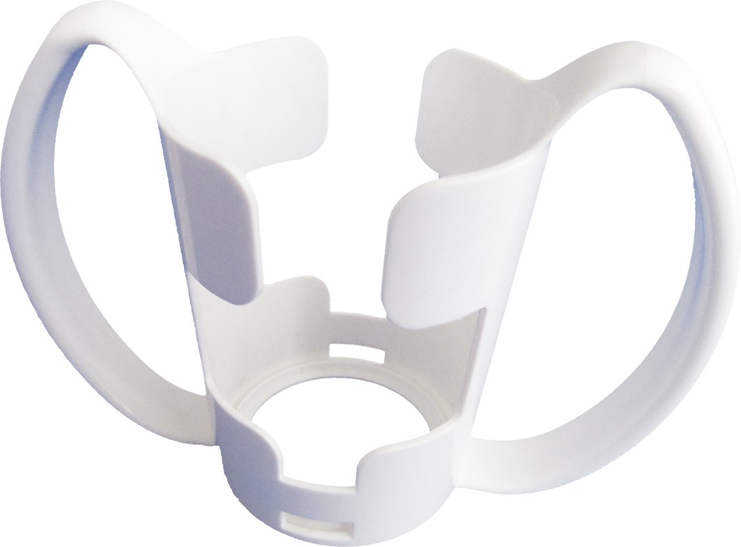 Obojručný držiak pohára s náustkom pomáha v sebaobsluhe. Široký úchop pre obe dlane uľahčuje prijímanie potravy. Držiak je z bieleho plastu.