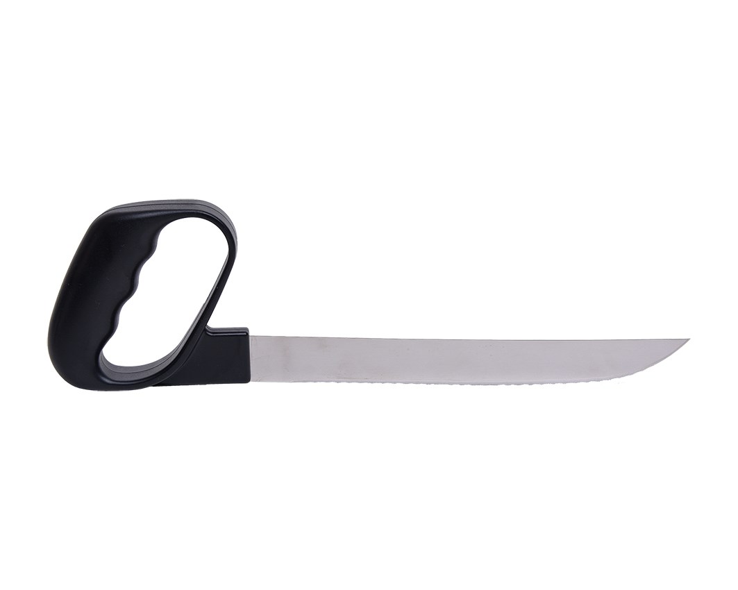 Nôž na chlieb s anatomicky tvarovanou kruhovou rukoväťou, ktorý je vhodný pre osoby s obmedzenou pohyblivosťou rúk a kĺbov na krájanie mäkkej zeleniny a chleba. Čepeľ noža z nehrdzavejúcej ocele a plastová rukoväť umožňujú umývať nôž v umývačke riadu pri teplote do 70° C.