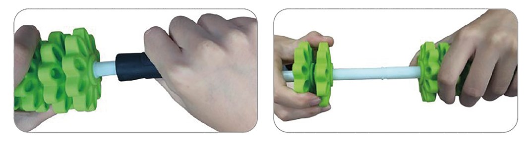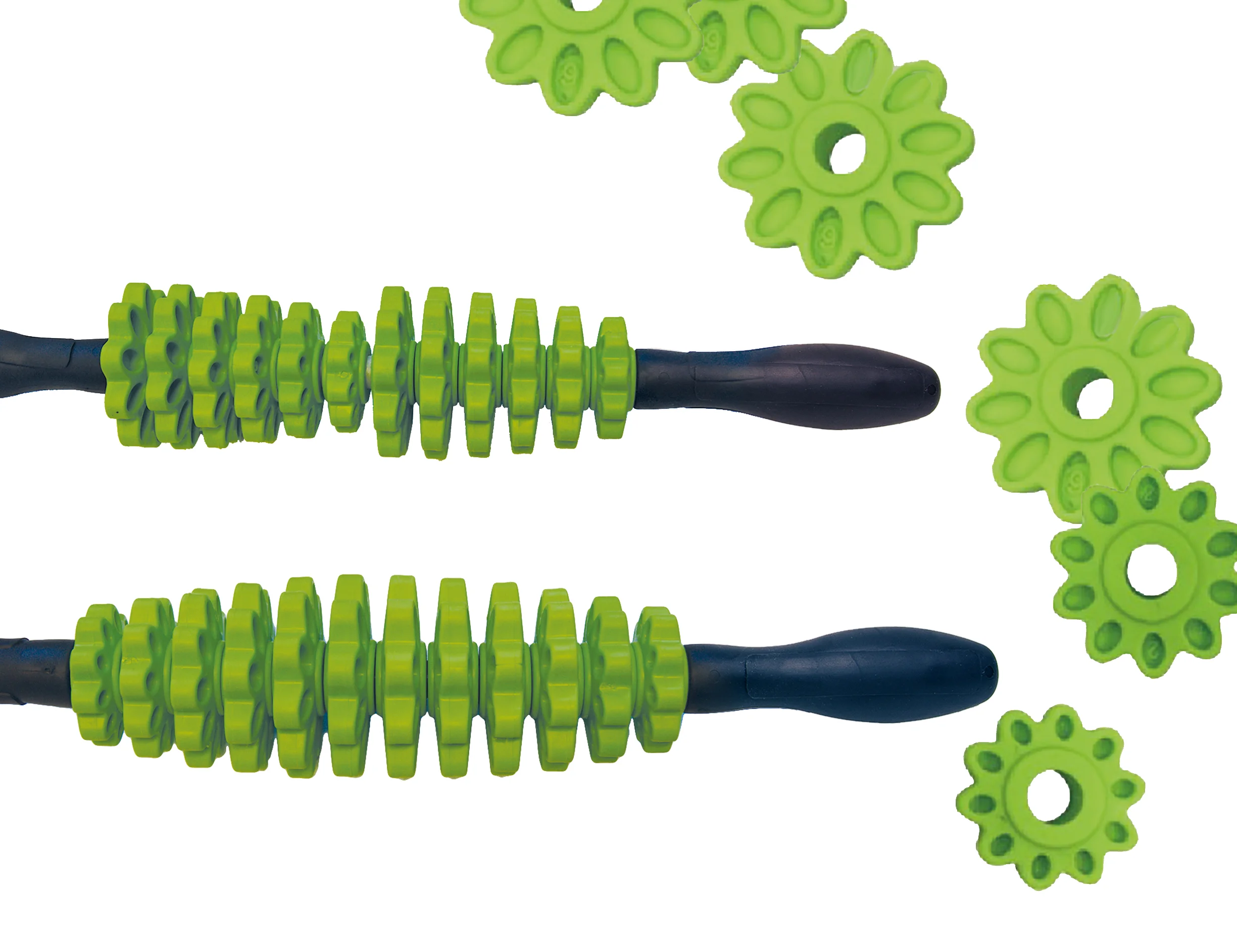 Skvelá pomôcka na fasciálnu masáž rôznych častí tela. Nastaviteľný masážny valček umožňuje individuálne usporiadanie masážnych krúžkov. Umožňuje tak prispôsobenie sa tvaru masírovanej časti tela a zabezpečí rovnomerný tlak na celú plochu. Masážne krúžky sú plastické a otáčajúce, dá sa masírovať aj cez oblečenie.
