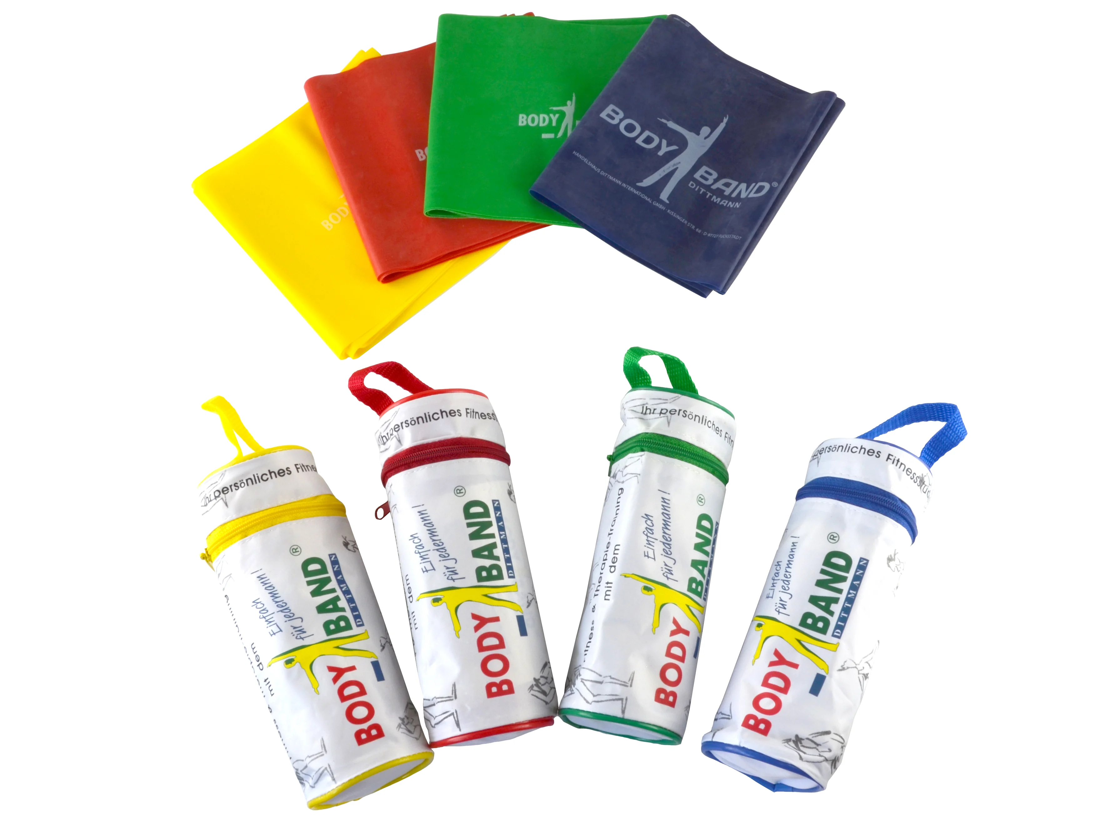 Na výber sú 4 variácie gumy podľa napätia: žltá – ľahké napätie, červená – stredné napätie, zelená – silné napätie, modrá – veľmi silné napätie.
