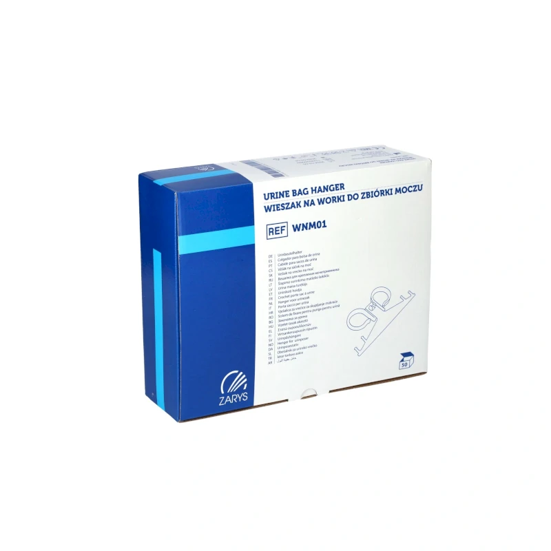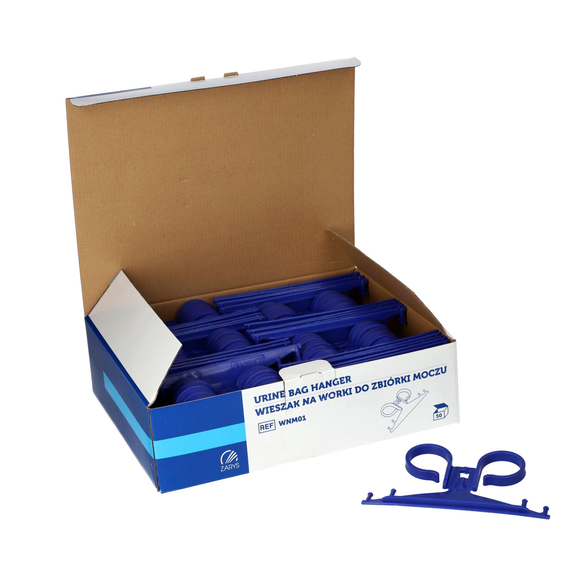 Držiak na močový vak vyrobený z odolného plastu, vhodný pre okrúhle aj štvorcové rámové konštrukcie postelí. Špeciálne upevnenie zabraňuje zalomeniu hadičky, umožňuje bezpečné zavesenie štandardných močových vakov na správny odber moču.