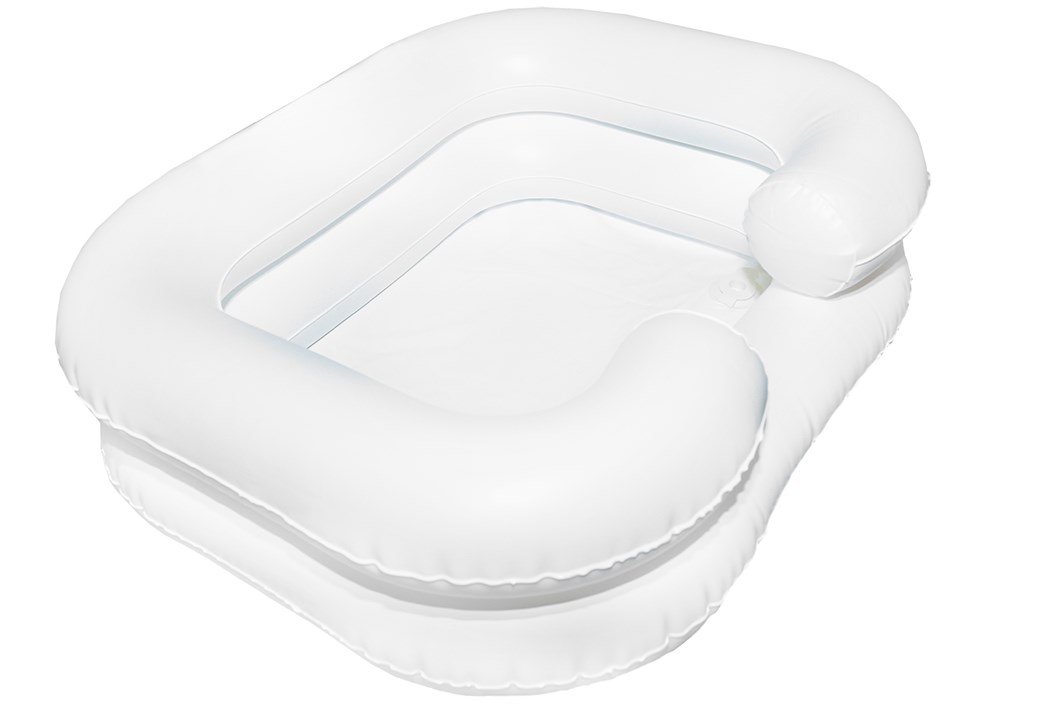 Umývadlo na umytie vlasov na lôžku. Táto mobilná pomôcka - dvojradové mäkké nafukovacie umývadlo s uzáverom odtoku vody, umožní ľahkú hygienu aj pre čiastočne či úplne imobilných pacientov. Umývadlo je dodávané bez vaku na sprchovanie vlasov a bez pumpy.