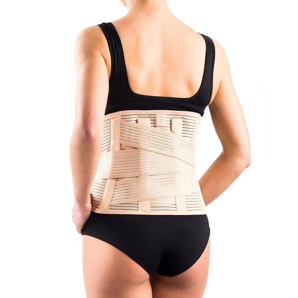Korzetový pás s podpornými pruhmi je vyrobený z elastickej kompresívnej tkaniny vpredu upevnenej na suchý zips. Taktiež má flexibilné kostice, hliníkové podpery, ktoré uvoľňujú a stabilizujú chrbticu a systém uťahovacích popruhov, ktoré umožňujú nastavenie stabilizačnej sily. Kompresná textília je vďaka svojej štruktúre priedušná a dokonale odstraňuje nadmerné teplo a vlhkosť. Výška korzetu je vhodná na stabilizáciu bedrovej časti chrbtice.