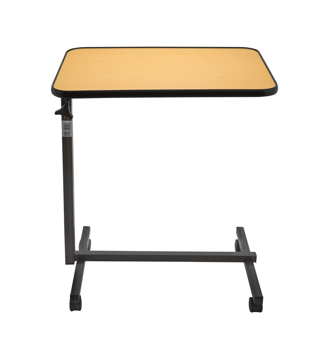 Mobilný stolík s nastaviteľnou výškou a sklonom stolovej dosky, praktický k posteli či ošetrovateľskému lôžku. Vhodný na konzumáciu alebo odkladanie vecí pre ležiacich pacientov. Je ľahko posúvateľný na štyroch kolieskach. Šetrí miesto, vďaka bočnej nosnej konštrukcie, spodná nosná časť sa zasunie pod posteľ. Povrch stolíka je plastový s farebnou imitáciou dreva, rohy sú zaoblené a okraje majú ochranu pred zošmyknutím predmetov zo stolíka. Stolík je pevný s nosnosťou až do 10 kg, má kovový rám s plastovou povrchovou úpravou.