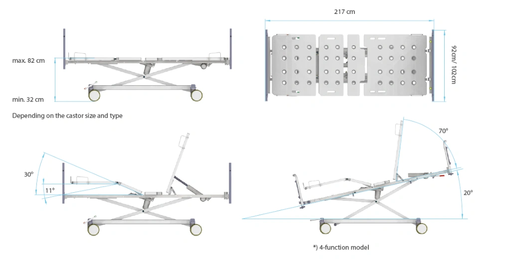 Výnimočný rozsah nastavenia výšky lôžka umožňuje bezpečnejšie a pohodlnejšie používanie pre zotavujúcich sa pacientov a uľahčuje prácu opatrovateľom. Naše dlhoročné skúsenosti s navrhovaním a výrobou nemocničných a ošetrovateľských postelí zaručujú, že ScanAfia XHS je vyrobená na dlhodobé používanie s minimálnou údržbou. Základ postele je vyrobený z hygienického ABS-plastu s vetracími otvormi. Táto základná štruktúra umožňuje, aby si penový matrac zachoval svoje vlastnosti lepšie ako pri tradičnom sieťovom základe. Základňa sa dá ľahko vybrať na dezinfekciu.