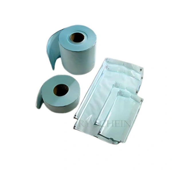 Rolka plochá papier-fólia s indikátormi para, EO a formaldehyd. Materiál sa používa ako aseptický obal pre sterilizáciu zdravotníckych pomôcok.