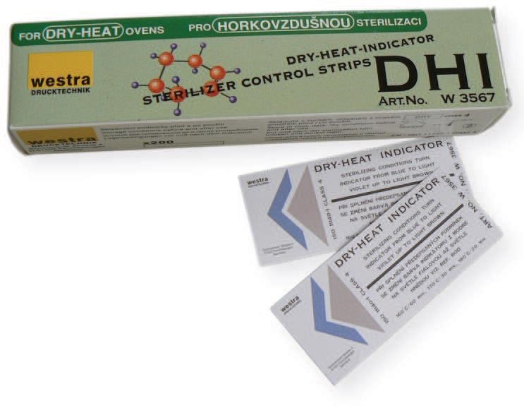 Chemický indikátor triedy 4 pre kontrolu účinnosti sterilizácie suchým teplom (HS). Tento chemický test sa vkladá do komory sterilizátoru v počte 1 - 3 kusov podľa objemu. Reakcia: z modrej na svetlofialovú až hnedú farbuBalenie 200 kusov
