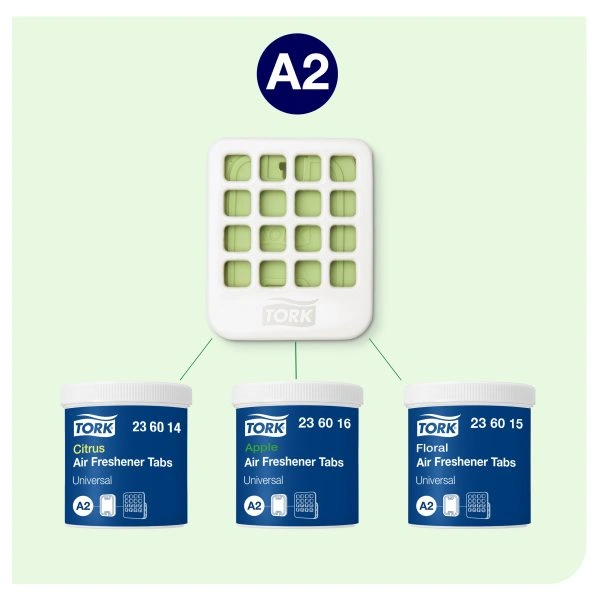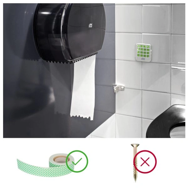 Udržujte umyvárne svieže a čisté nenápadným spôsobom pomocou Tork držiaka na osviežovač vzduchu. Tento kompaktný držiak je skvelou alternatívou k zaveseniu osviežovača na potrubie, pretože ho môžete umiestniť kamkoľvek potrebujete. Jednoduchá inštalácia a dopĺňanie šetrí čas údržby. Použite ho s Tork Universal osviežovačmi vzduchu pre celodenné šírenie príjemnej vône.