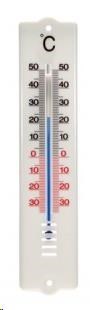 Teplomer vonkajší -30 až +50°C, biely plast, rozmer 207 x 43 x 8 mm