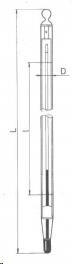 Obalový teplomer s jemným delením stupnice. Celková dĺžka teplomeru je 480mm.